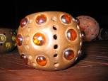 J'incruste des morceaux de verre, en général des billes, dans certains objet, en particulier les boules décoratives et les photophores.